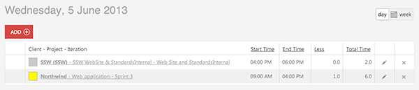 We use SSW TimePro for our timesheets. It is a sleek and powerful web app, just log in and start tracking your time!