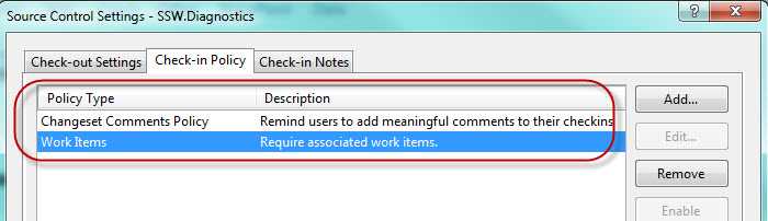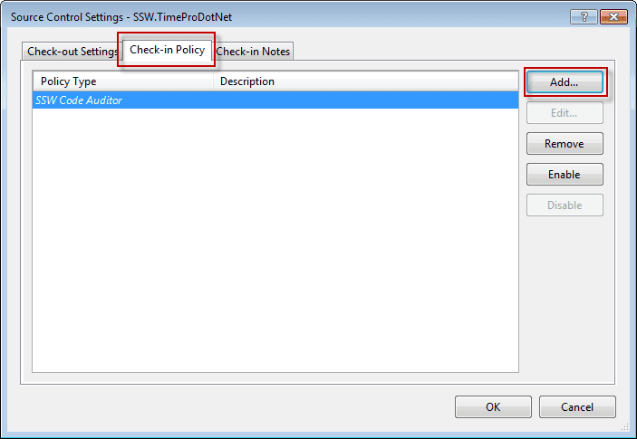 Click Add... and select the check-in policies above. If you don’t have SSW Code Auditor installed, download it here.add