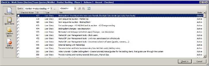 Work Items – To ensure check-ins are linked to a Work Item in TFS