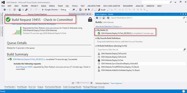 Figure: Good Example – Check your build has passed from Team Explorer | Builds