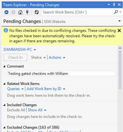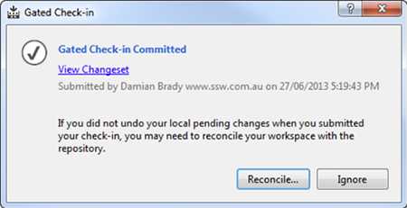 Gated Checkins are great for verifying your project builds successfully before a checkin occurs, but the workflow and dialog messages can be difficult to follow. Sometimes it’s not clear what you need to do next as a developer.
