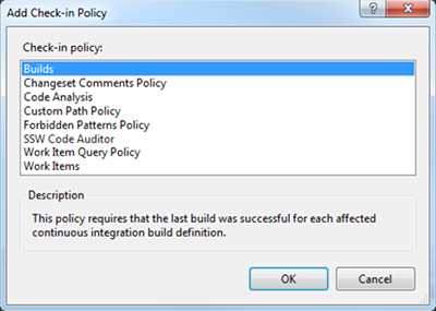Check-in policies are a great way to enforce code quality before it hits your source control repository. SSW recommends that the following check-in policies be enabled by default on your project: