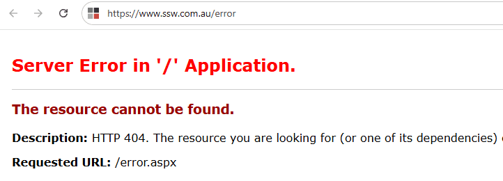 protected void Application_Start(object sender, EventArgs e) { //RouteTable and PageRouteHandler are in System.Web.Routing RouteTable.Routes.Add("ProductRoute", new Route("products/{productname}", new PageRouteHandler("~/ssw/Products/ProdCategoryList.aspx"))); }Figure: Example on how to route ssw.com.au/products/{everything} to ssw.com.au/ssw/Products/ProdCategoryList.aspx page