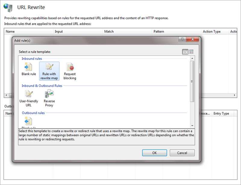 - You can use rewrite maps in IIS URL Rewrite to add a number of redirects See Storing URL rewrite mappings in a separate file for an explanation of how to use rewrite maps.