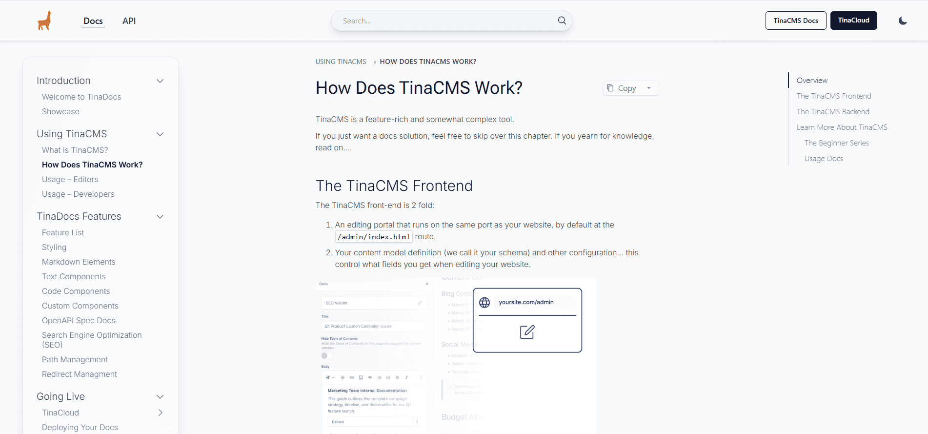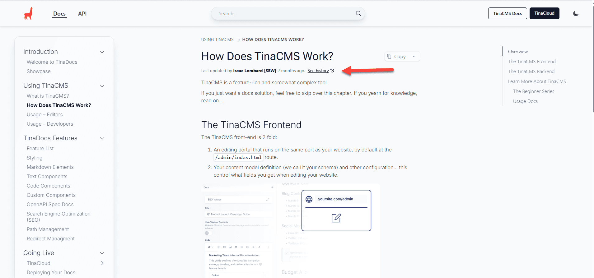 The example page explains how TinaCMS works, but users can’t tell whether the content reflects the latest version since recent updates or changes might not be apparent. Without this information, it’s hard to determine the authenticity or accuracy of the content.