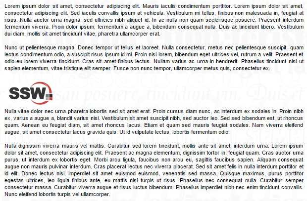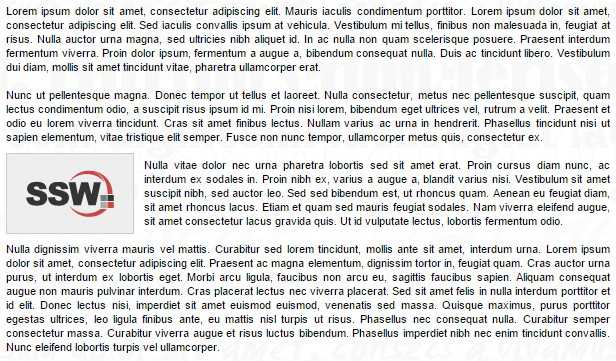 Many people will simply "plonk" an image onto a web page in between or next to a block of text. This interrupts the flow of the page and gives a disjointed, unprofessional impression.