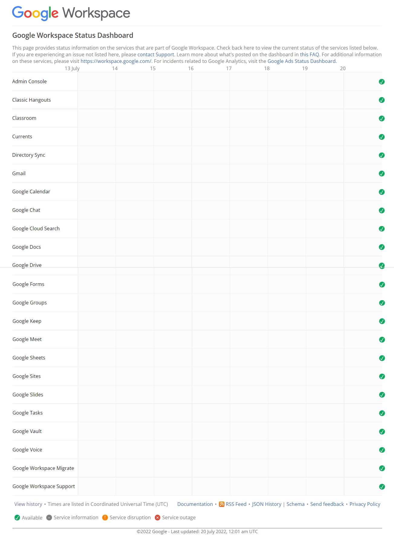 Figure: Microsoft Service Health - admin.microsoft.com/servicestatusFigure: Google Workspace Status Dashboard - www.google.com/appsstatus/dashboardFigure: Apple System Status - www.apple.com/au/support/systemstatusFigure: MailChimp status - status.mailchimp.com