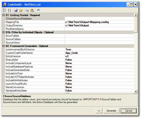 Figure: An example of command line of Code Smith for NorthWindWe recommend you put this command in a file called "_Regenerate.bat" and add it in the solution in case you will generate it again in future.