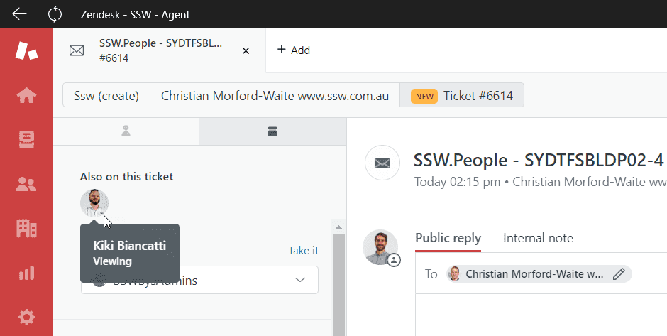 It's also worth noting that you can see if someone else is currently viewing a ticket. This can also help to avoid duplicating work - if you see that someone else is viewing a ticket, have a chat with them before you start working on it.