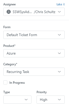 - Categories could include: User Access, Security, Feature Request, Recurring Tasks.