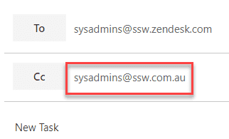 In Zendesk, you can set groups, like 'SysAdmins' and 'Sales'and insert the correct people there already, so there is no need to add another group of the same people to the email. That is repetition and it is not necessary.