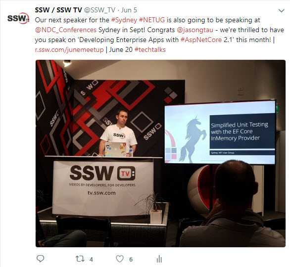 Figure: An example of SSW promoting the .NET User Group on Twitter For tips on taking great photos for social media promotions, see Do you know how to take great photos for your socials?