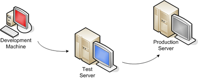 For smaller projects we can often get away without having a dedicated development environment. In this scenario we have 2 hosted environments + 1 local: