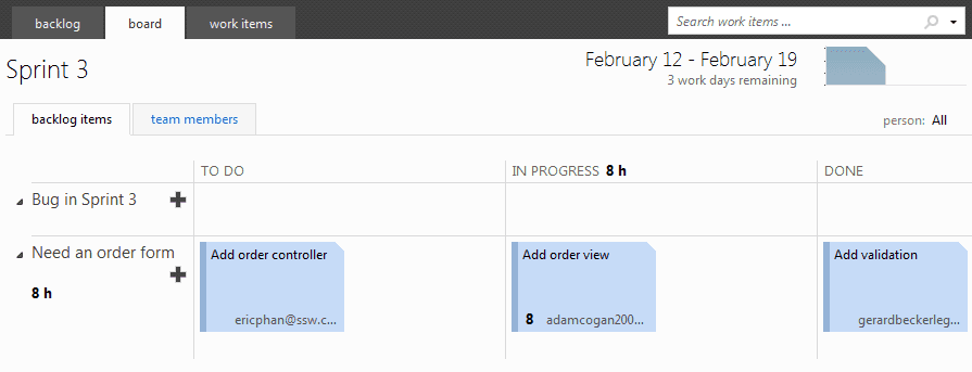 图:TFS Preview 中的任务板 (TFS 2012)