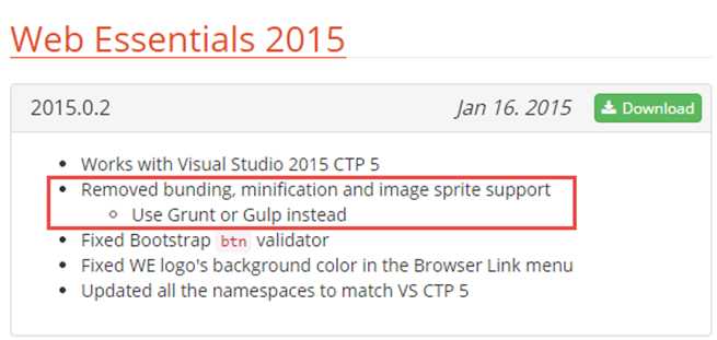 For example, we could previously use web essentials to do a lot of the necessary bundling and automation, but this was killed off at the start of 2015.