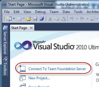 - Connect your Visual Studio to the TFS Server by clicking on Connect To Team Foundation Server
