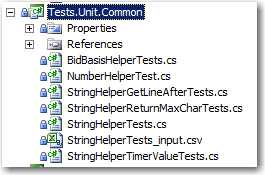 As well as keeping your code tidy, using this naming convention also allows you to use TestDriven.Net's 'Go To Test/Code' command. This navigates between your tests and code under test (and back). This is something that test-driven developers end up doing a lot. Screen captures at https://weblogs.asp.net/nunitaddin/testdriven-net-3-0-all-systems-go