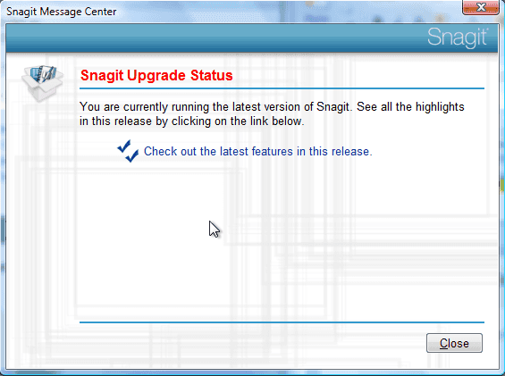 Figure: Bad example - Snagit has horrible UI (red text when it is not an error and Hyperlinks without underlines), however the link to the latest features is not bad