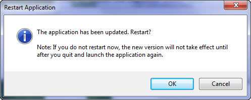 Figure 5: Restarting the application is required because the new version will not take affect until quit and launch the app again