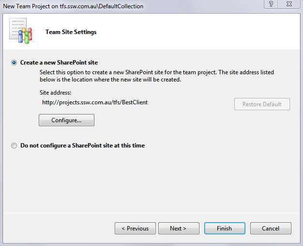 Note: It is also possible to create a new SharePoint site afterwards and attach it to a Azure DevOps project, via this hack