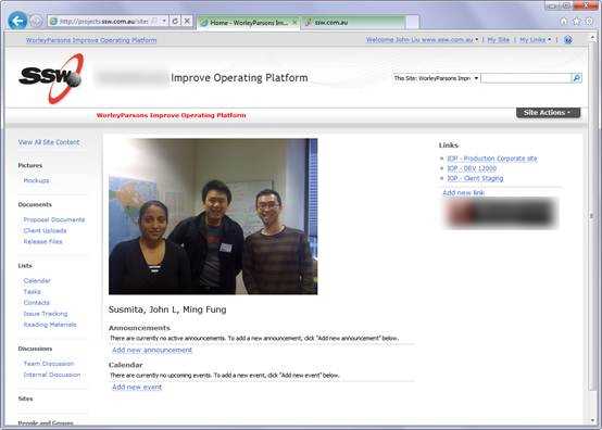 Figure: Once your 'TFS Portal' is ready, add a picture of the team site, prior to letting them know about the new site