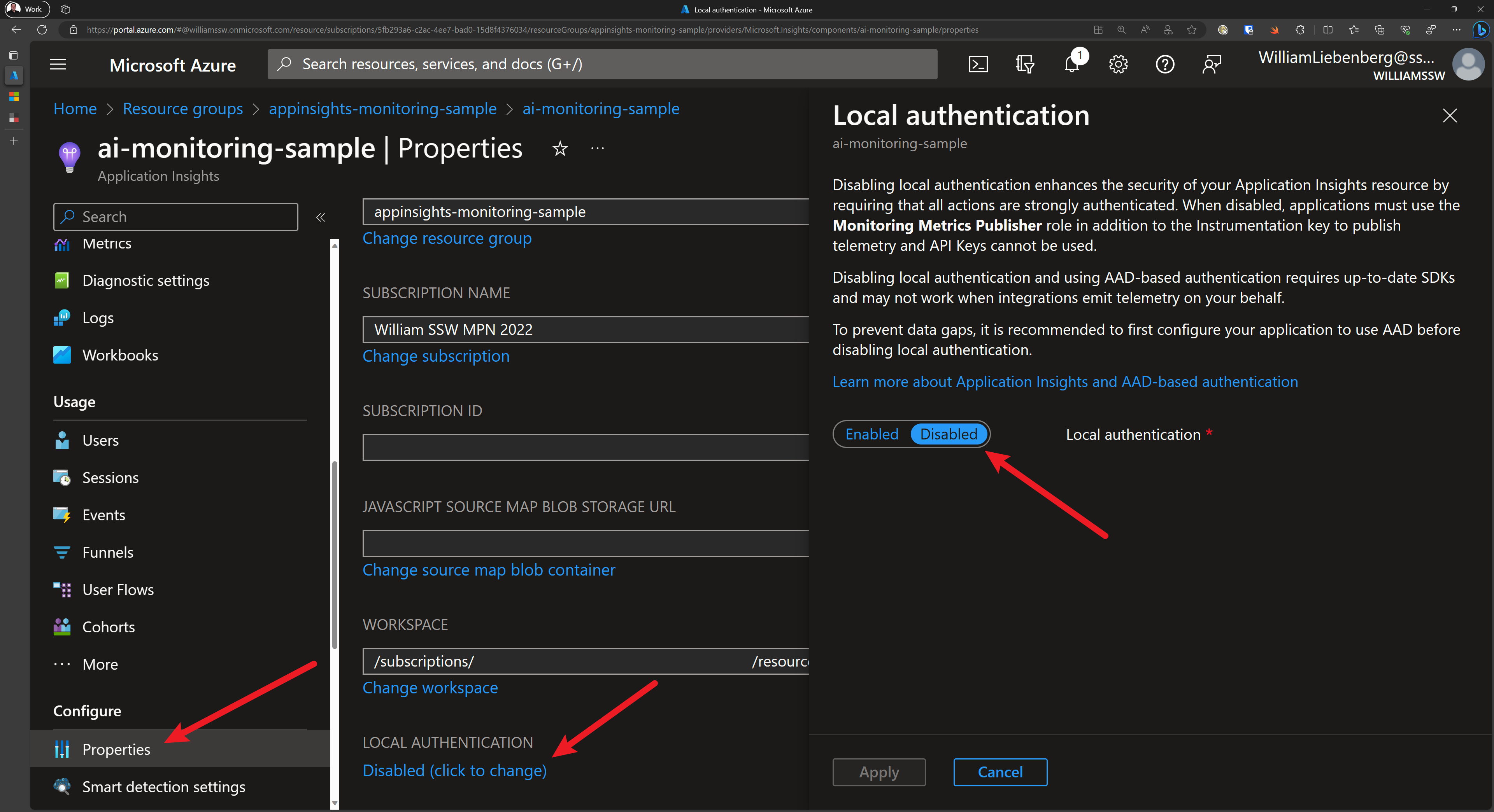 ✅ Figure: Disable Local Authentication to enable Enhanced Security for Application Insights using Bicep