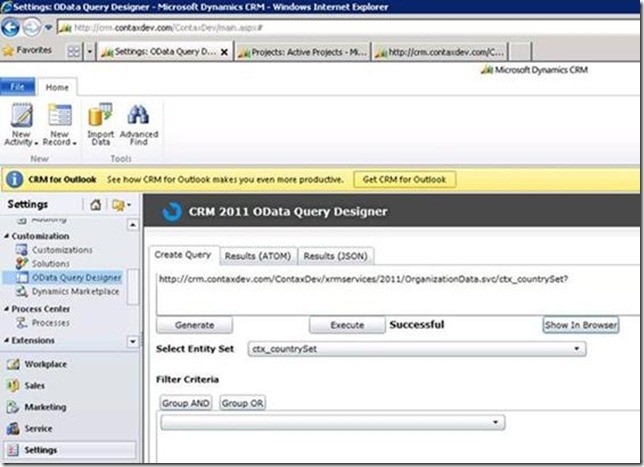 Note: You can really only call the OData endpoint from an application that already has an authentication cookie with the CRM server. i.e. you can't impersonate and call it like you can the standard WCF endpoints So it is really only suited to calling from Silverlight and JavaScript web resources that are delivered inside CRM (because they have the cookie)