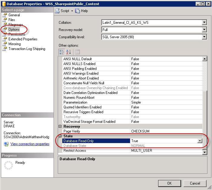 NOTE: When some SharePoint timer services are run it may cause the site to display errors when the database is in read-only mode
