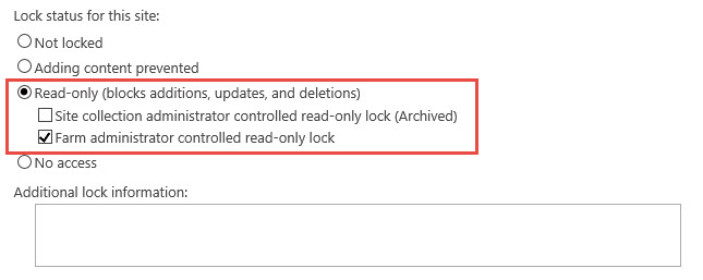 Note: Read more at Manage the lock status for site collections in SharePoint 2013