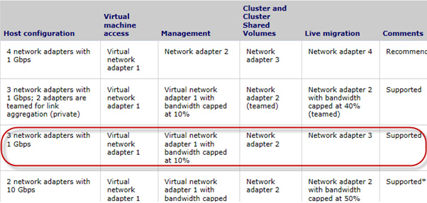Microsoft lists several recommended and supported network configurations. It is very important that you configure your Hyper-V Cluster with one of the supported network types otherwise you will have performance issues once you load up the cluster.