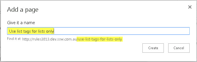 Note: Each rule will be a “page” on SharePoint – with its own URL - differently from old aspx, where rules were sections on a single page.