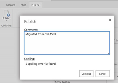 Note: "Check in a major version" equals "Publish", so you can choose to "Check in a major version" instead of "Publish".