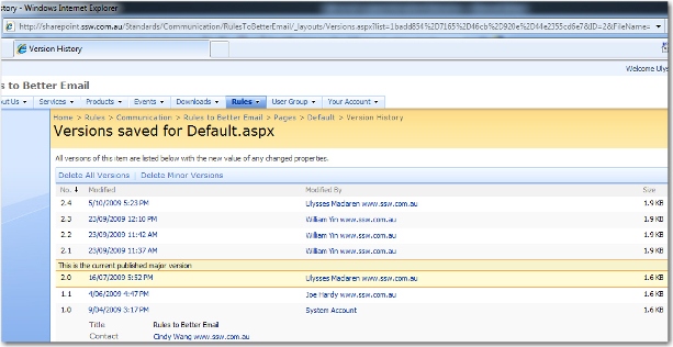 sharepoint.ssw.com.au/Standards/Communication/RulesToBetterEmail/_layouts/Versions.aspx?list=1badd854%2D7165%2D46cb%2D920e%2D44e2355cd6e7&ID=2&FileName=%2FStandards%2FCommunication%2FRulesToBetterEmail%2FPages%2FDefault%2Easpx&Source=%2FStandards%2FCommunication%2FRulesToBetterEmail%2FPages%2Fdefault%2Easpx